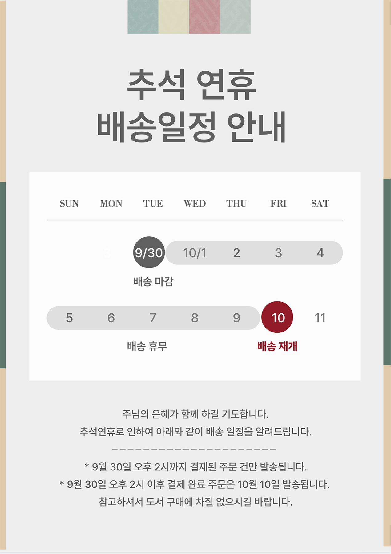 추석 연휴 택배 배송안내 (9월 30일 오후 2시 택배마감)